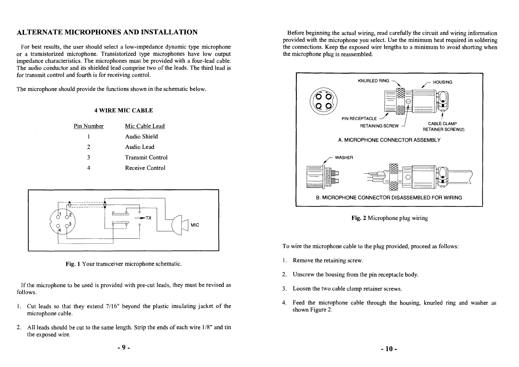 impedance characteristics. The microphones must be provided with a four-lead cable.