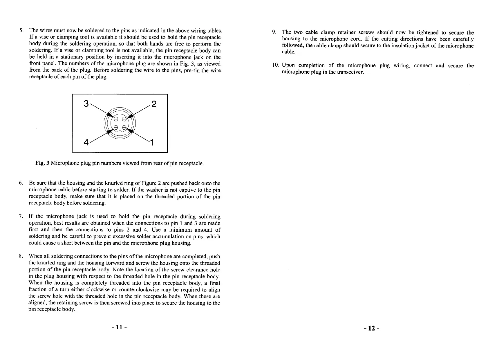 followed, the cable clamp should secure to the insulation jacket of the microphone