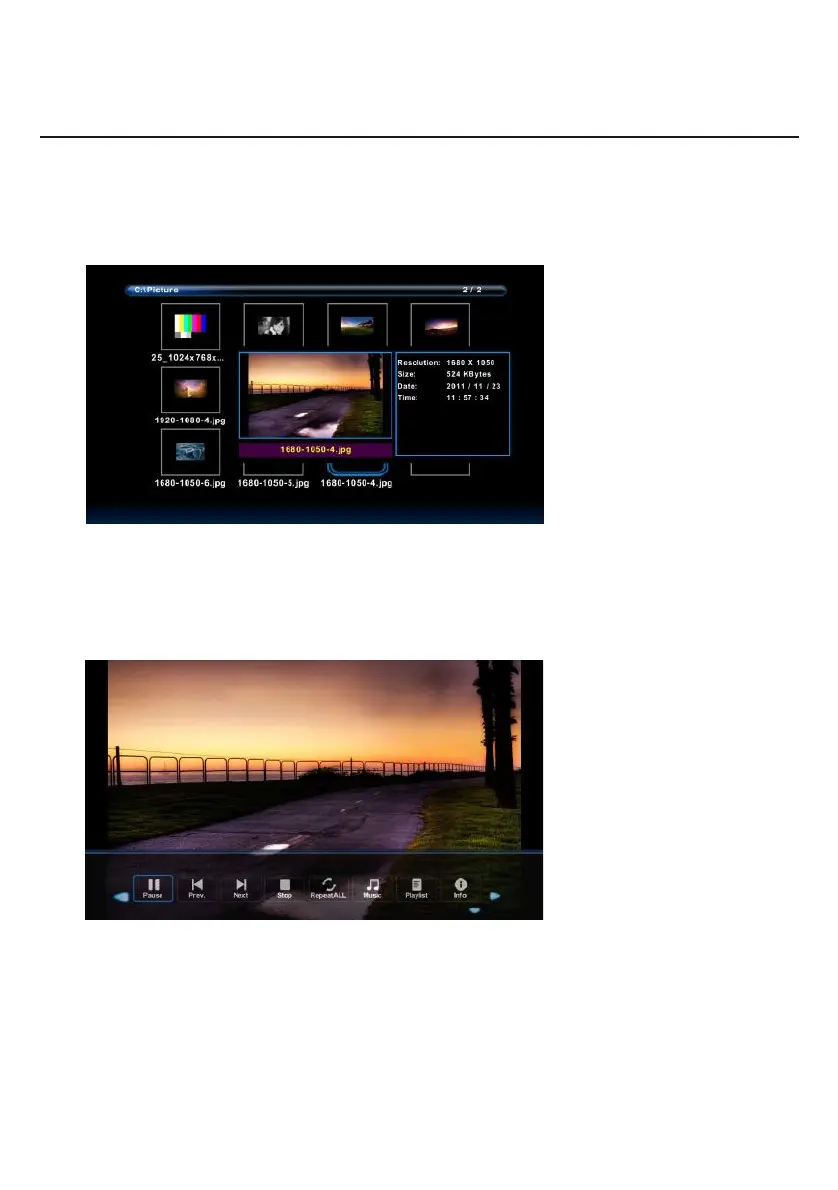 Press ◄ / ► button to select the file you want to watch in the file selecting menu,