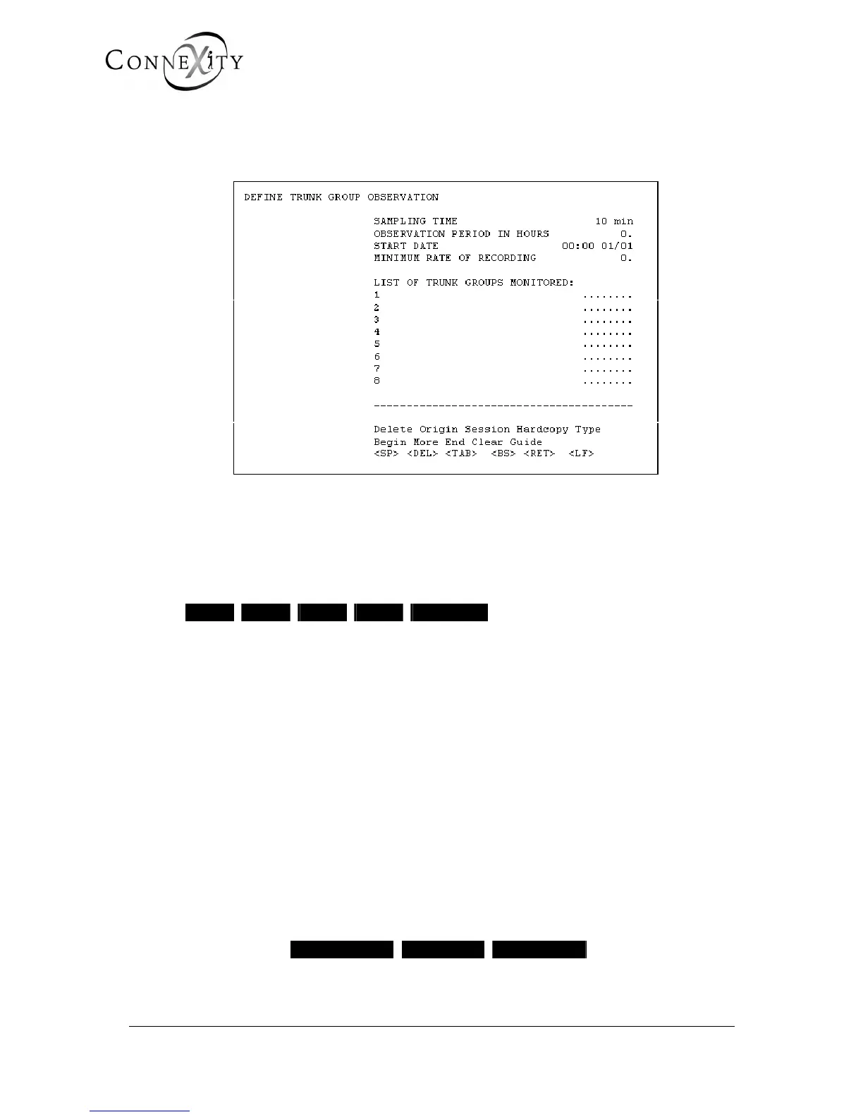 This menu is used to identify the trunk group(s) to be observed, to select the sampling