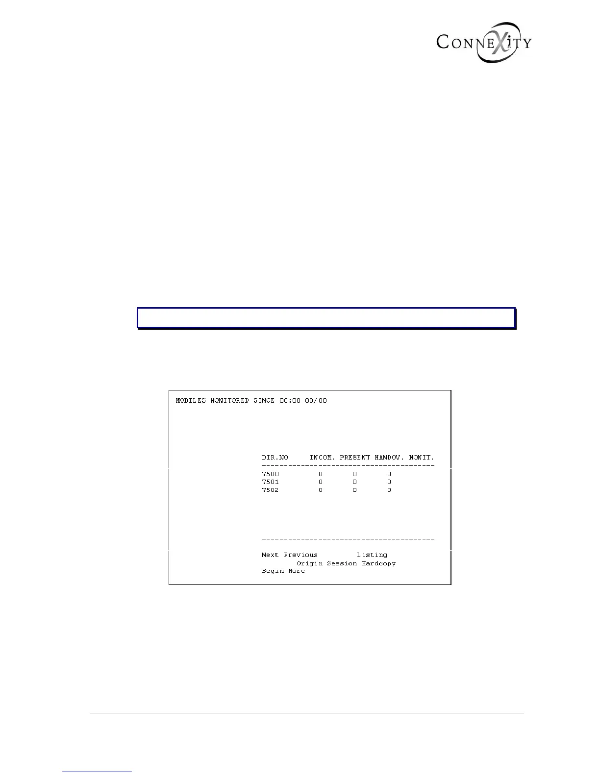 For each terminal, this screen displays the directory number and the number of incoming