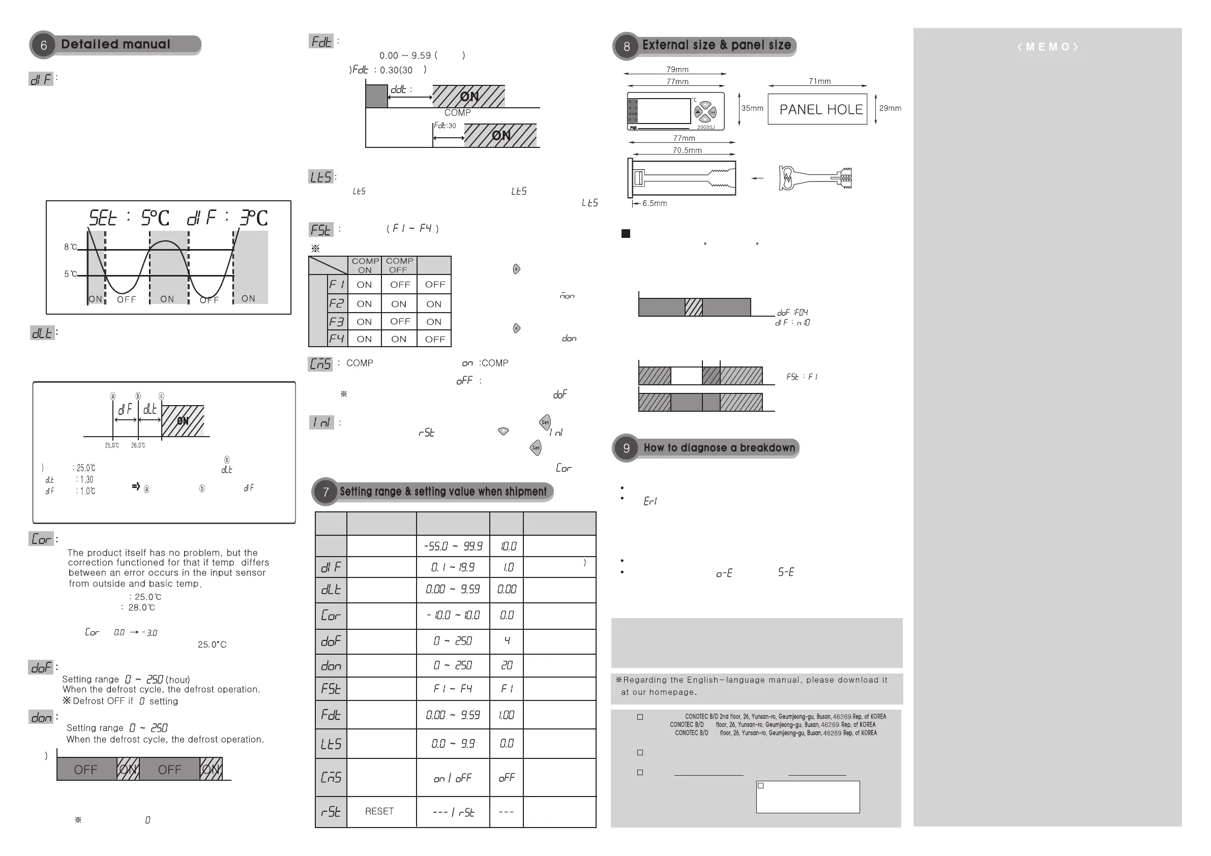 * FAN -> turn on while COMP output, turn off while COMP OFF and defrosting