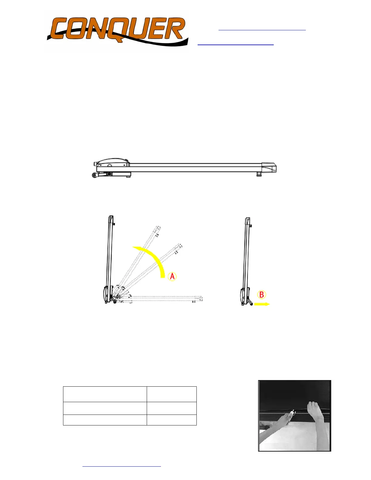 1. When treadmill is not in use, it may be folded. Lift treadmill to engage stand. See below.