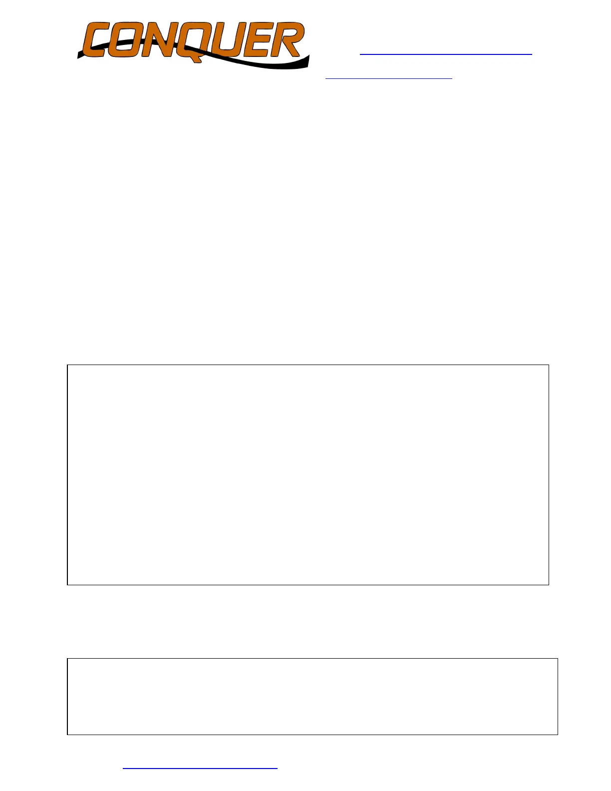EMAIL: customercare@conquerequipment.com WEB: help.conquerequipment.com TEL: 855-349-4327