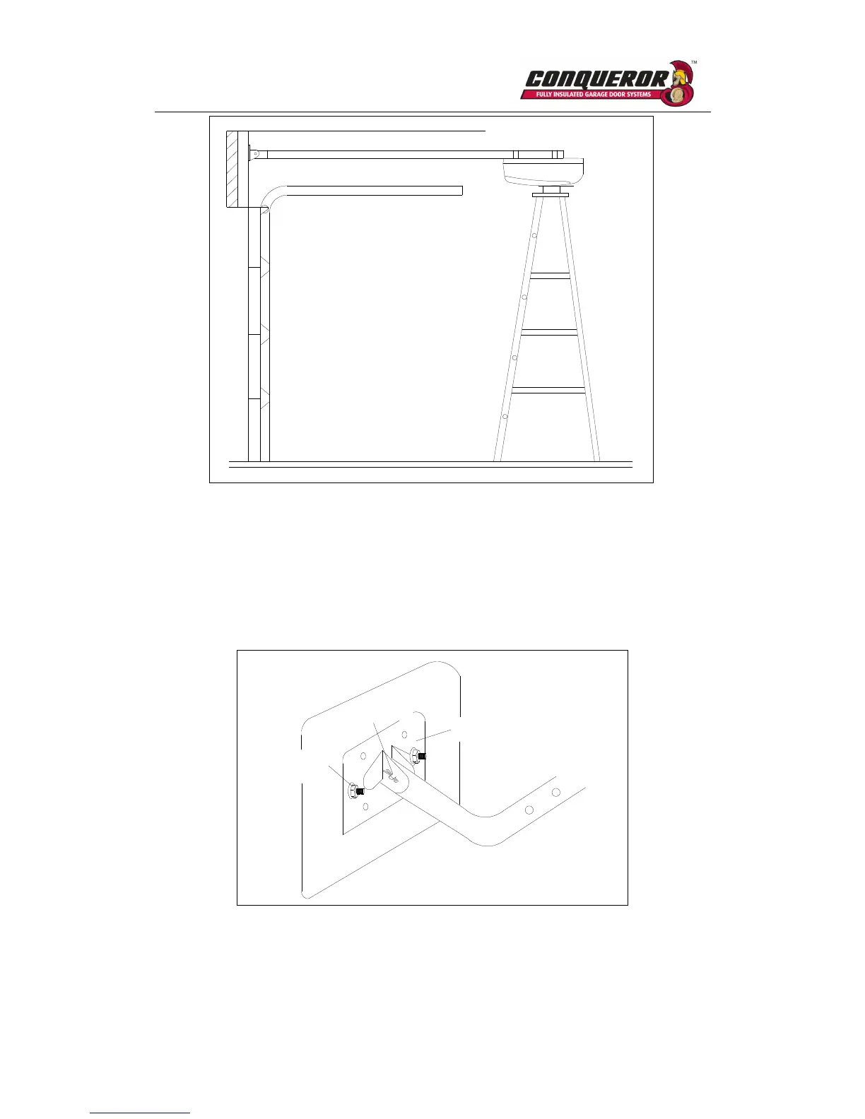 Link the L arm to the door bracket with pin and R pin. Link the straight arm to the shuttle with
