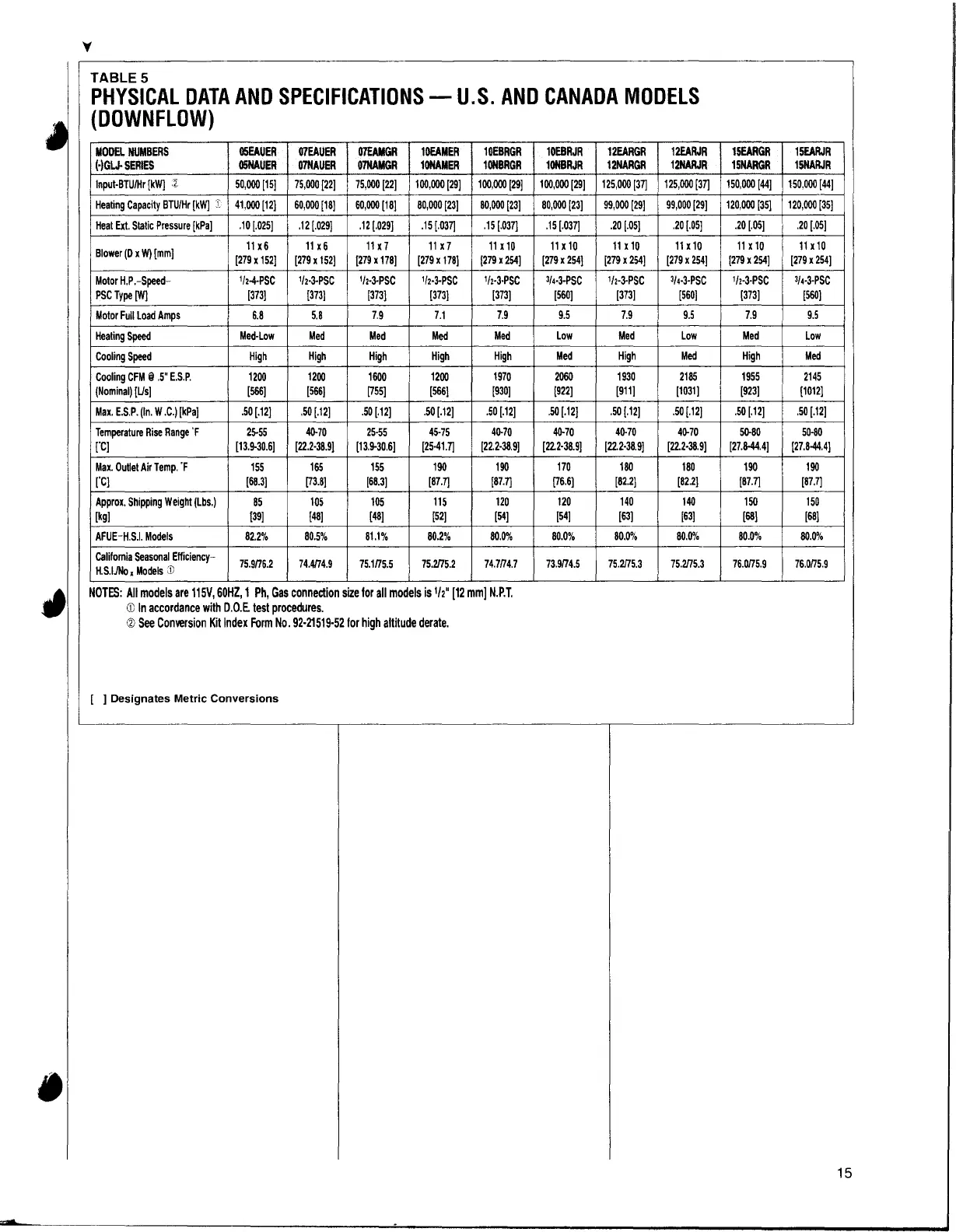PHYSICALDATAAND SPECIFICATIONS-U.S. AND CANADA MODELS