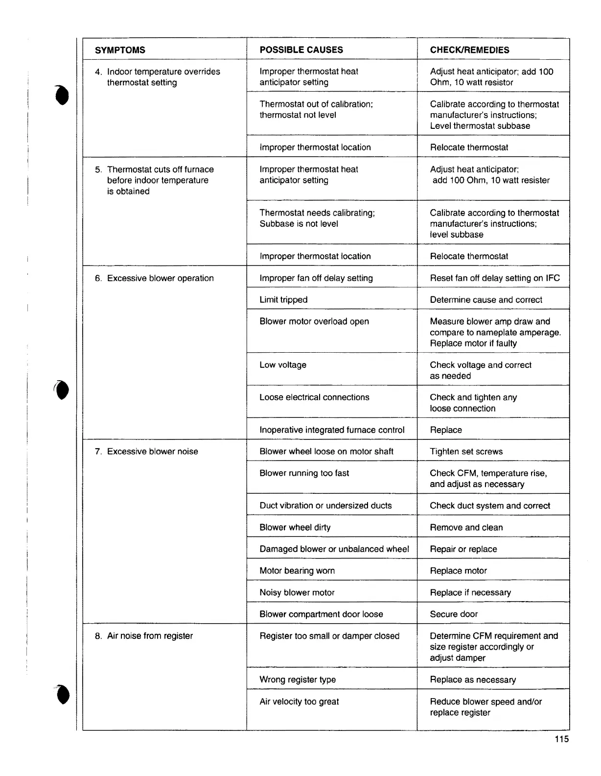 Check CFM, temperature rise,