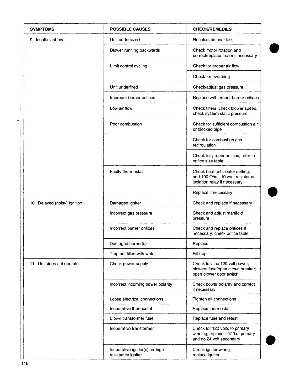11. Unit does not operate Check power supply Check for: no 120 volt power;