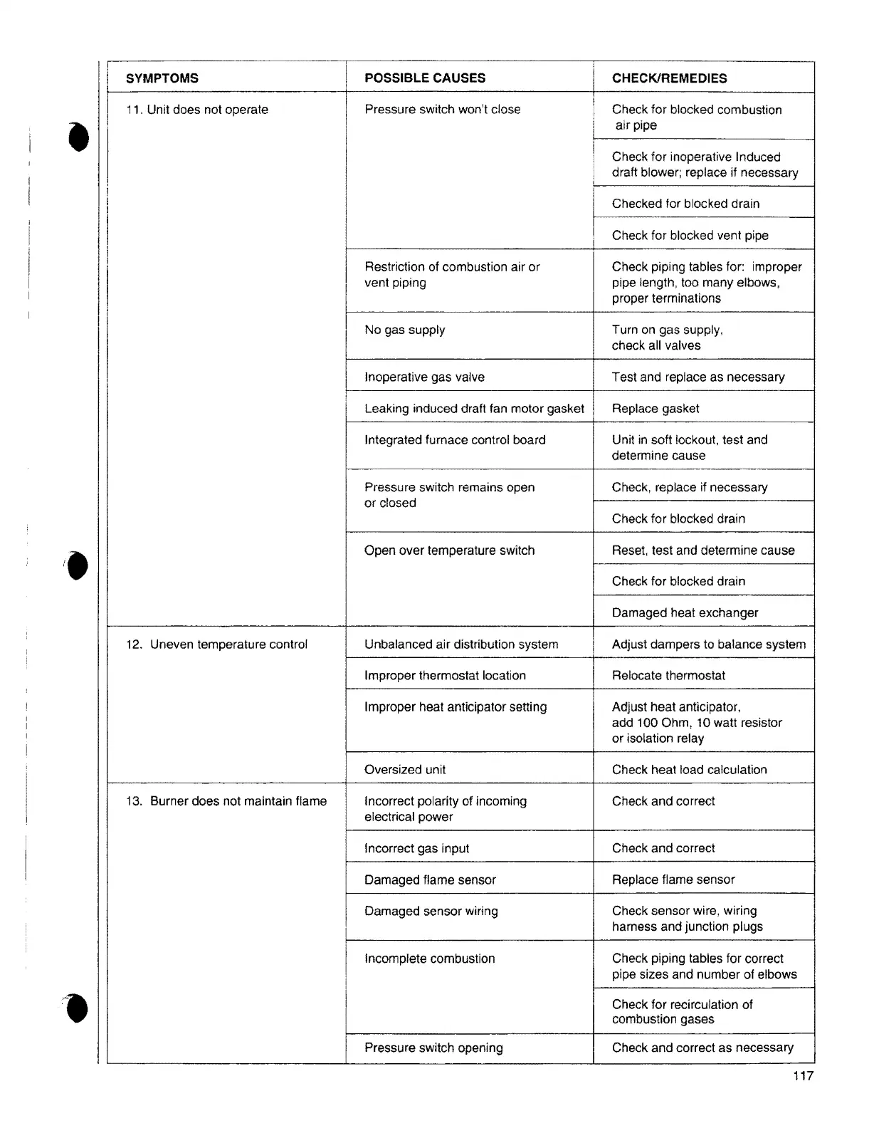 11. Unit does not operate Check for blocked combustion