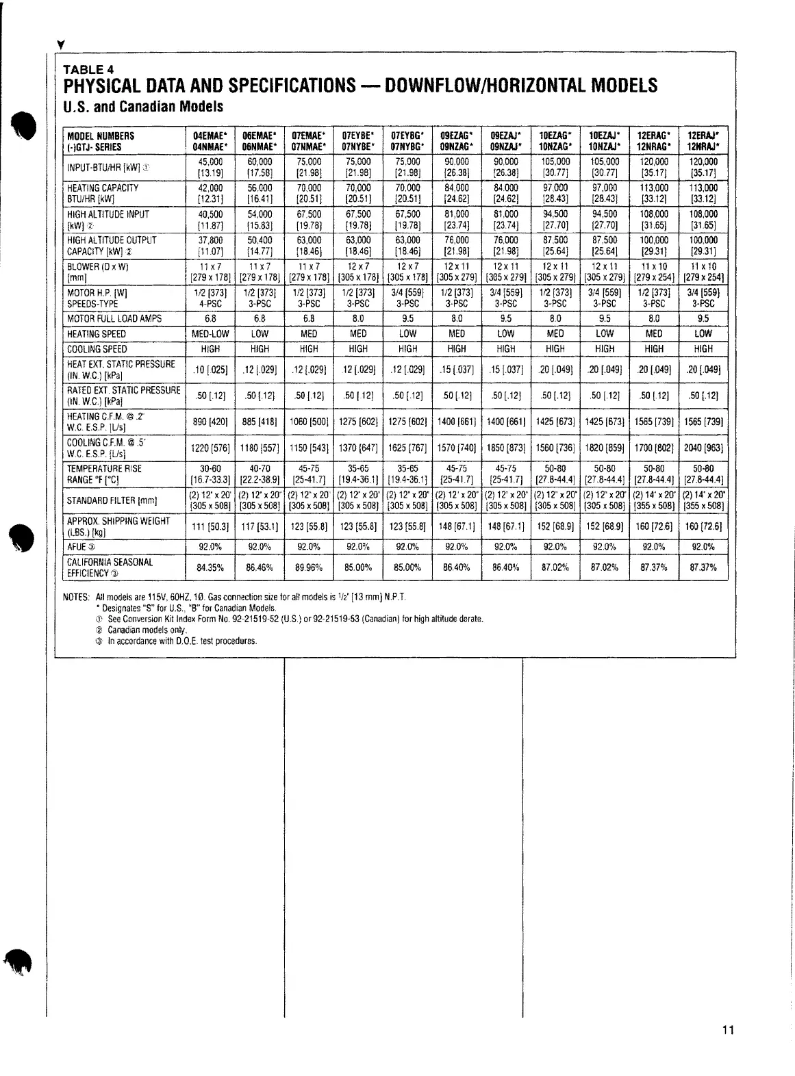 PHYSICALDATAAND SPECIFICATIONS DOWNFLOW/HORIZONTAL- MODELS