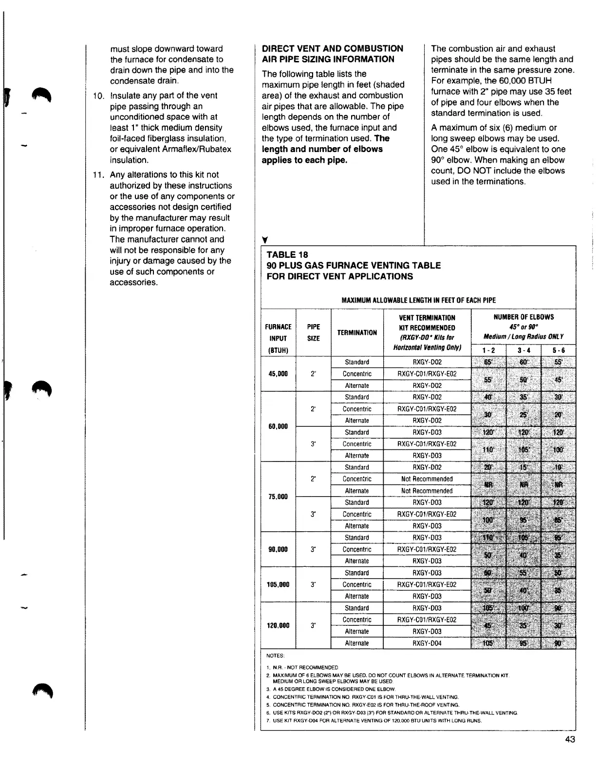 7. USE KIT RXGY-D04 FOR ALTERNATE VENTING OF 120.000 STU UNITS WITH LONG RUNS.