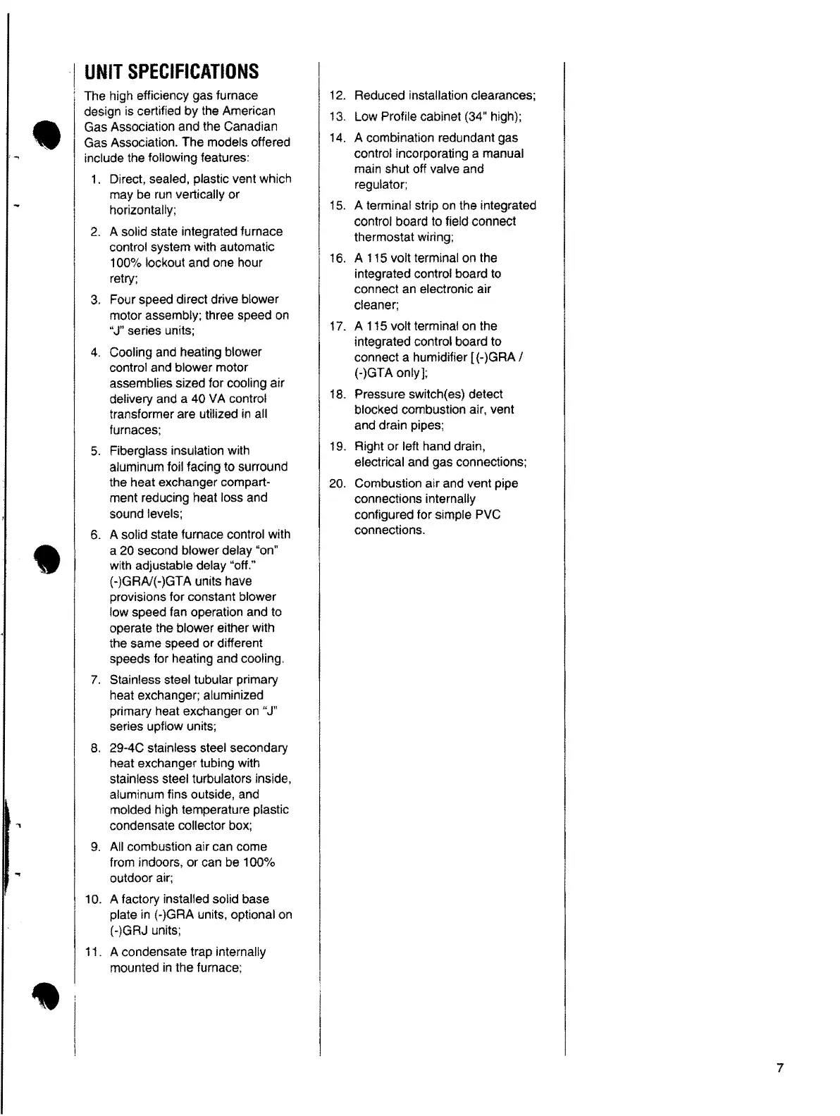 UNIT SPECIFICATIONS