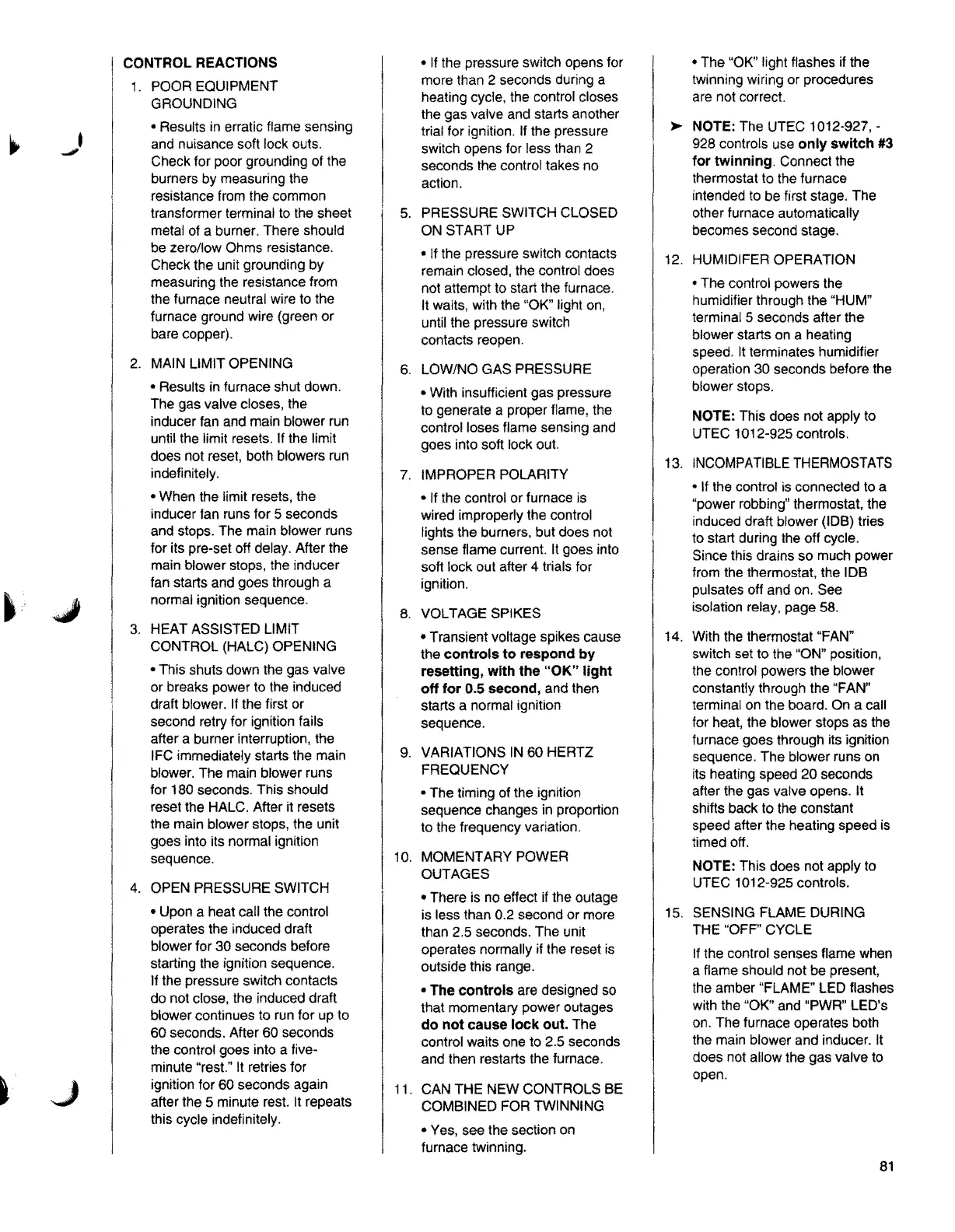 • If the control or furnace is