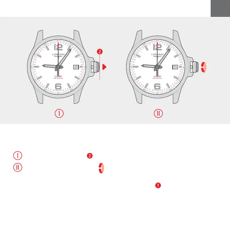 Etter at tiden er stilt inn, dytter du kronen