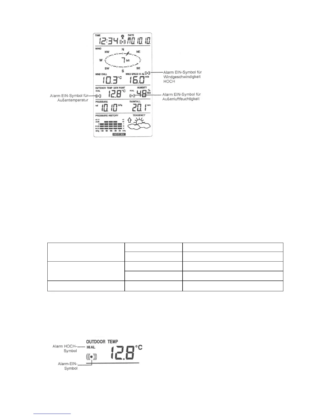 - Außenluftfeuchtigkeitsalarm HOCH (HI)
