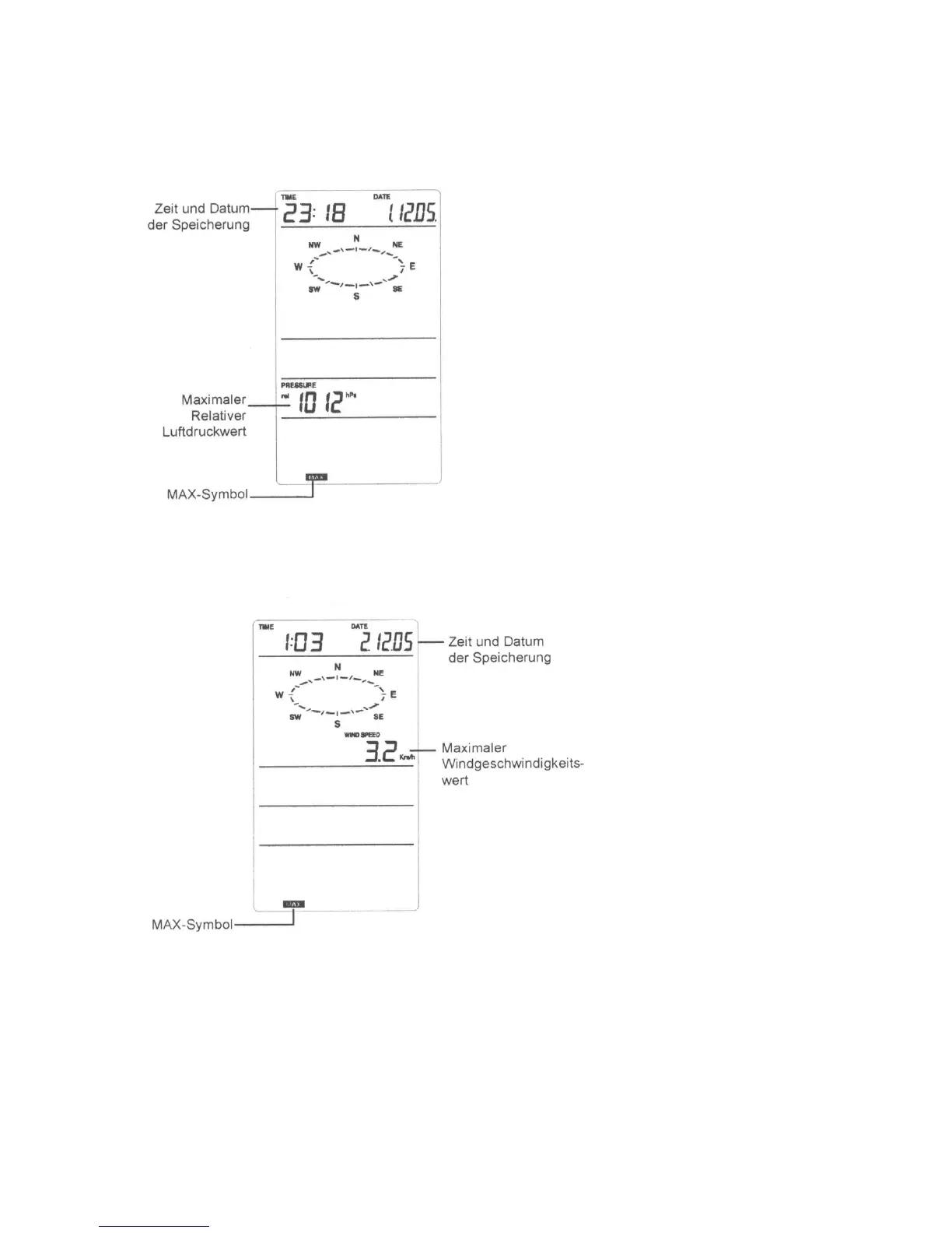 Betätigen Sie die MIN/MAX-Taste zur Anzeige der gewünschten Wetterdaten! Möch-