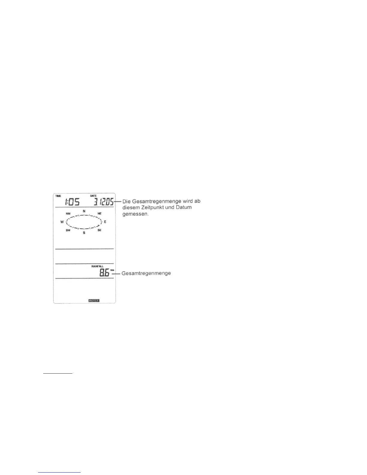 Drücken Sie im normalen Anzeigemodus zur Anzeige der Gesamtregenmenge die