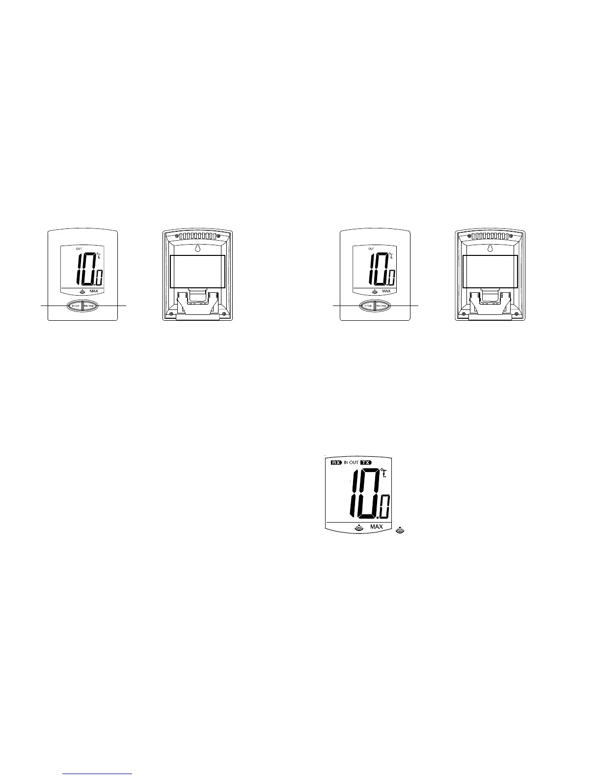 Press and hold to reset the stored minimum and maximum (with display of outside temperature).•