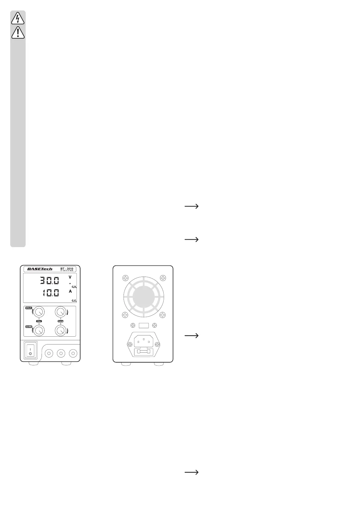 • Stellen Sie das Labornetzgerät auf eine feste und ebene Unterlage.