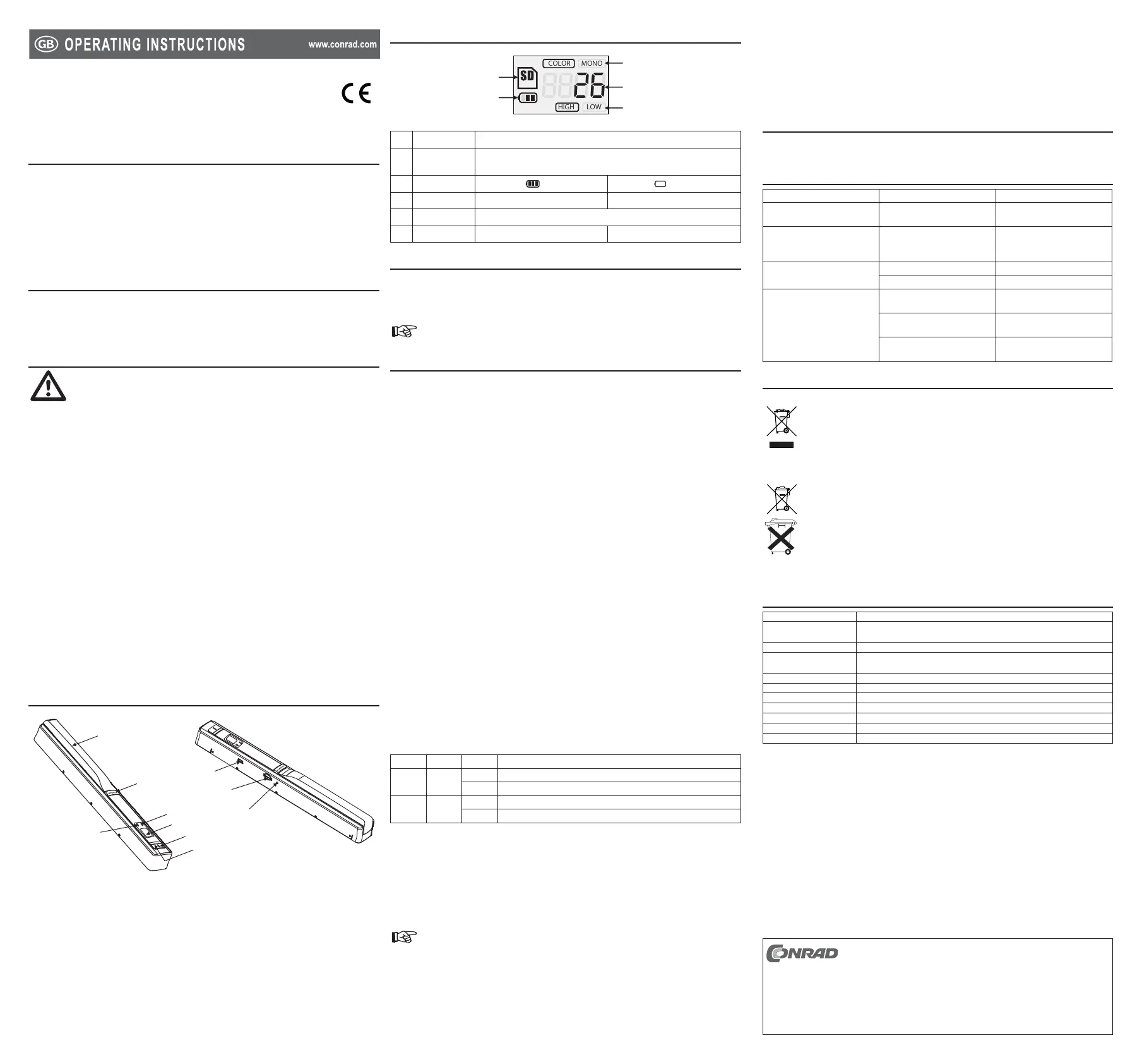 Turn the scanner on/off by pressing and holding the POWER / SCAN button for approx. two seconds. •