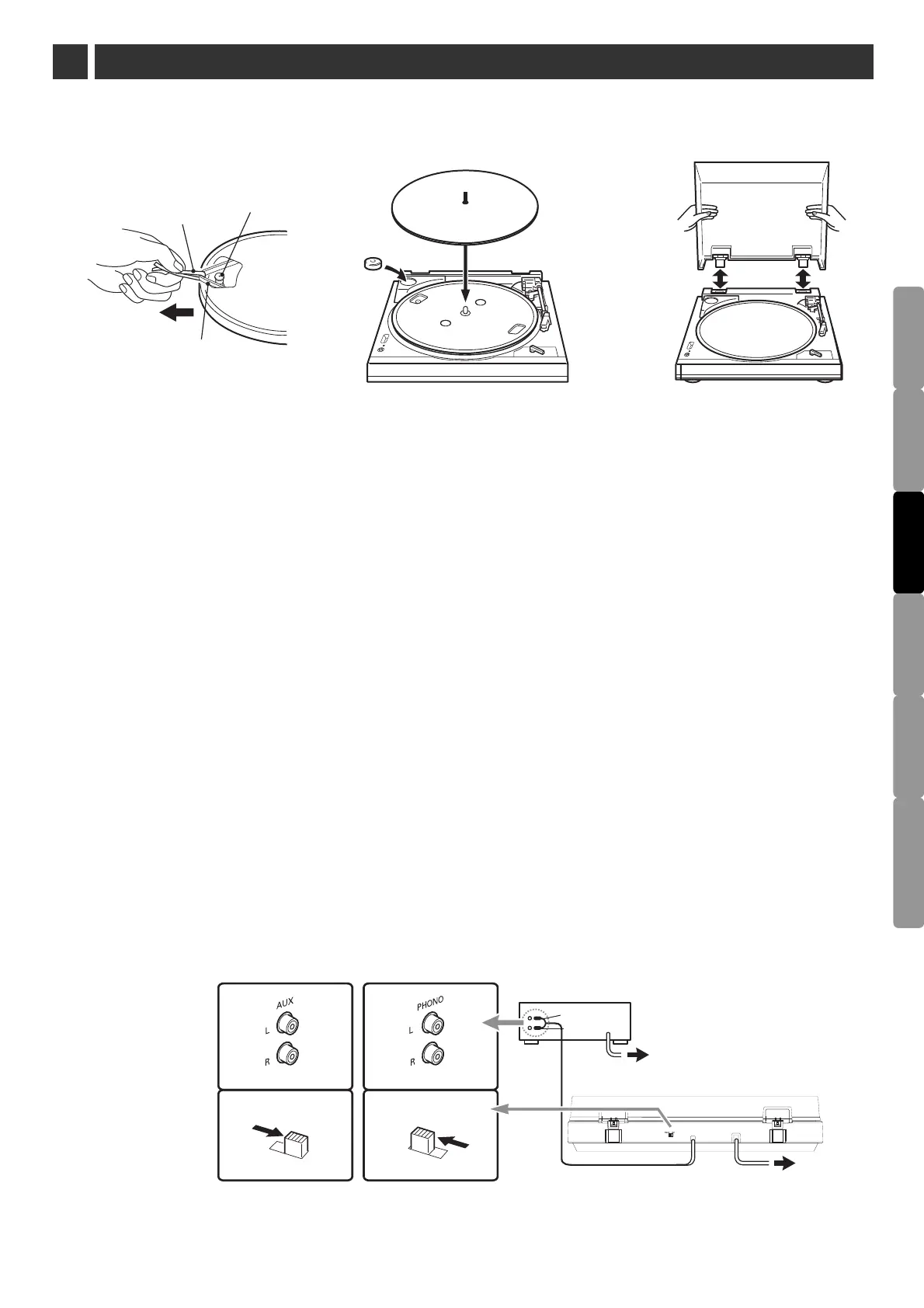 • Benutzen Sie den PHONO-Eingang Ihres Stereo-Systems, stellen Sie den Schalter entsprechend auf