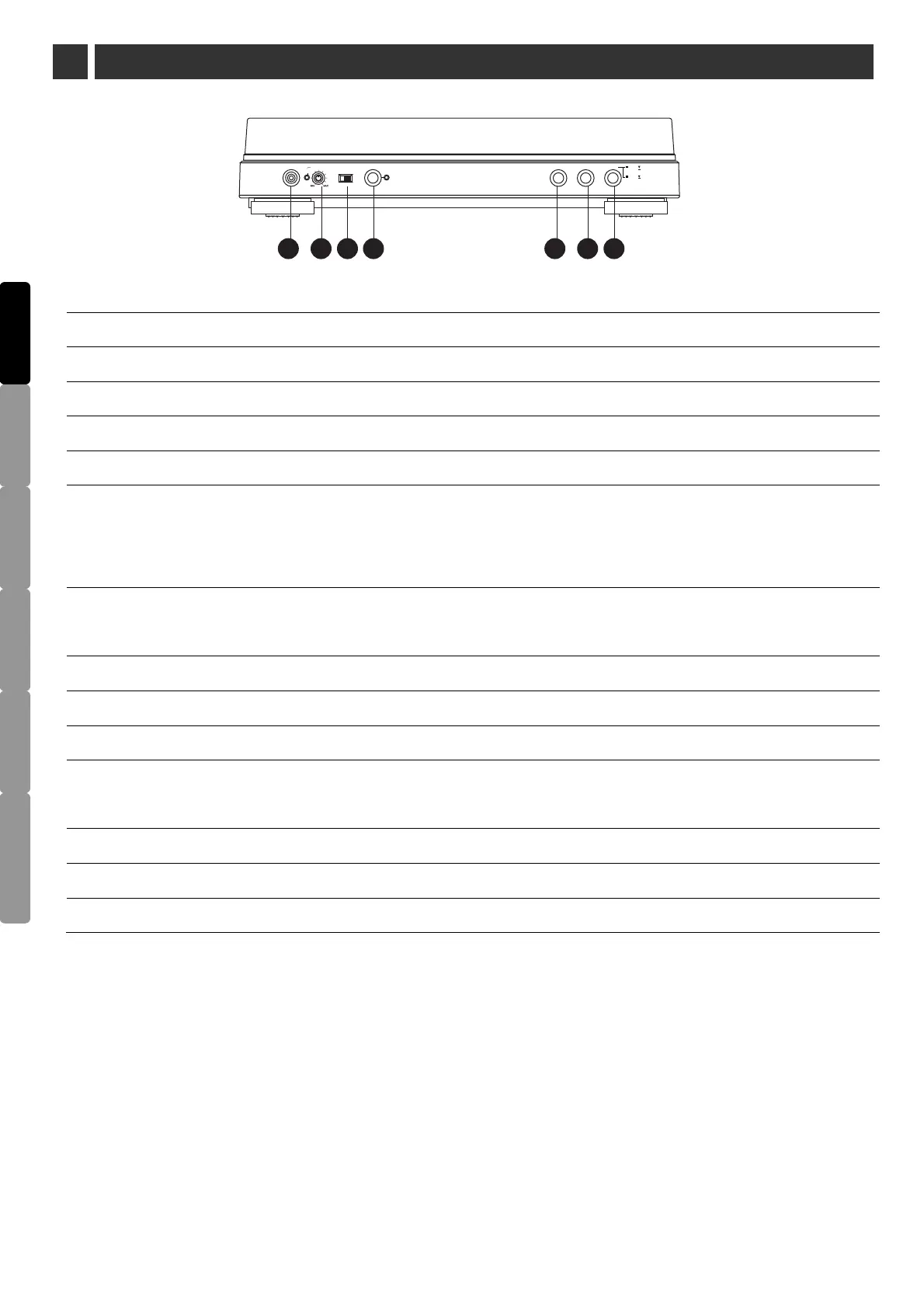 8. Phono/Line switch - Select Phono setting when you connect to the phono input on your home stereo.