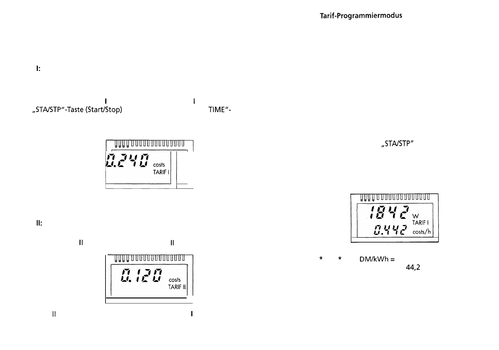 einstellen (Anzeige TARIF