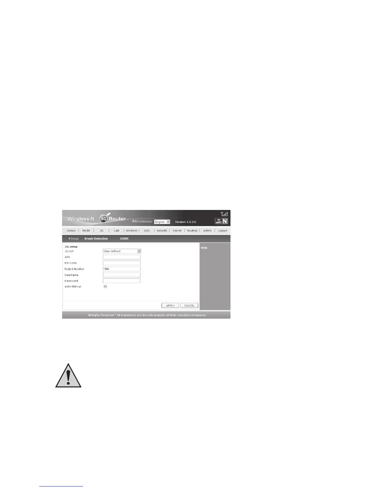 • Wanneer de pagina “Mode” opnieuw wordt getoond, klikt u in de bovenste lijst op “3G”. Voer