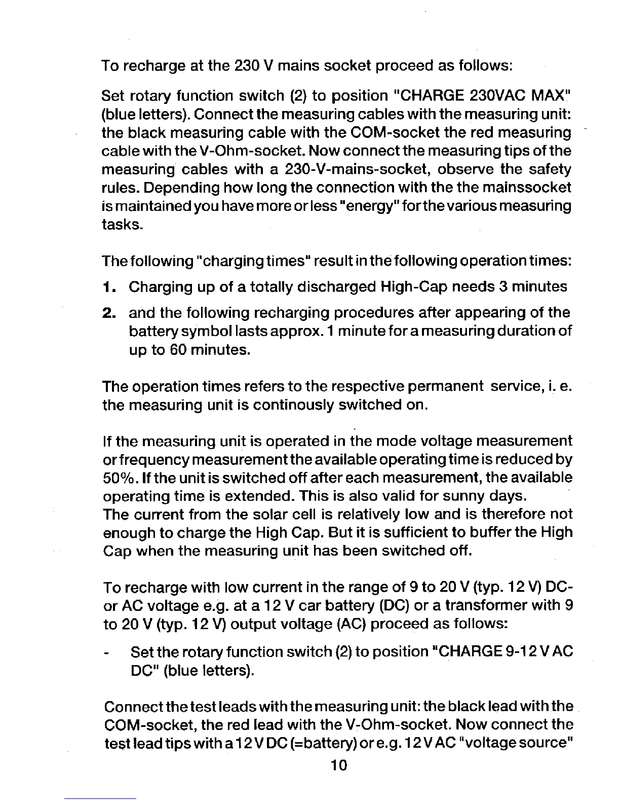 Conrad VC-300 - Charging Procedures: 230 V and Low Voltage