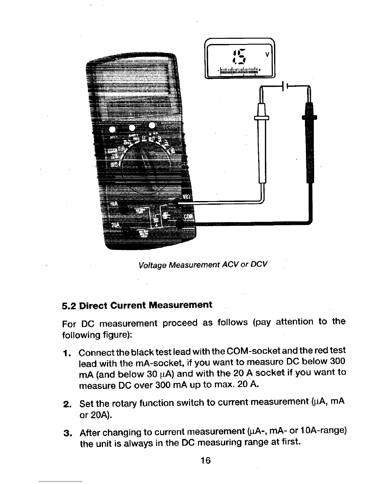 Conrad VC-300 - DC Current Measurement Procedure; DC Current Connection and Range