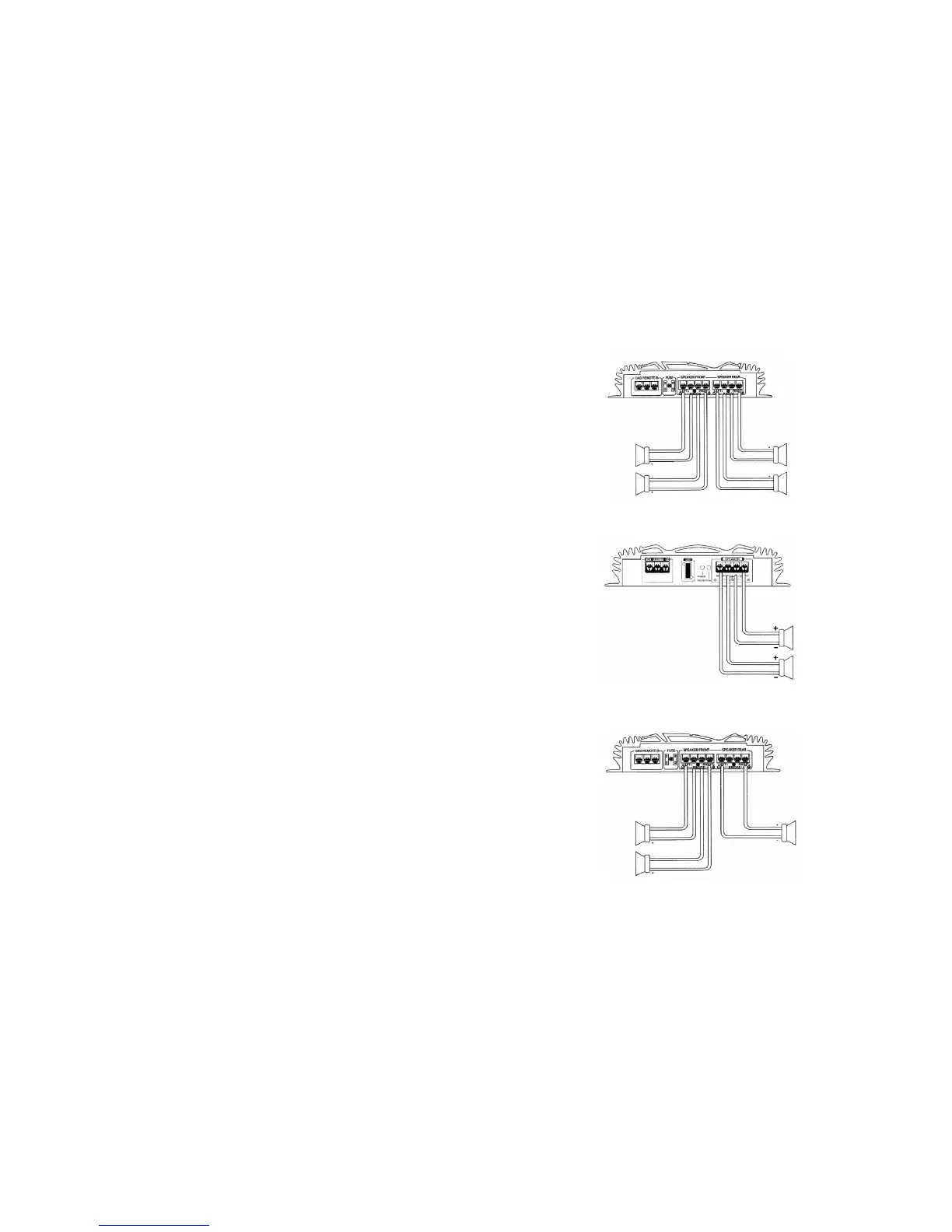 Depending on the model and mode of operation, connect the loudspeaker outputs