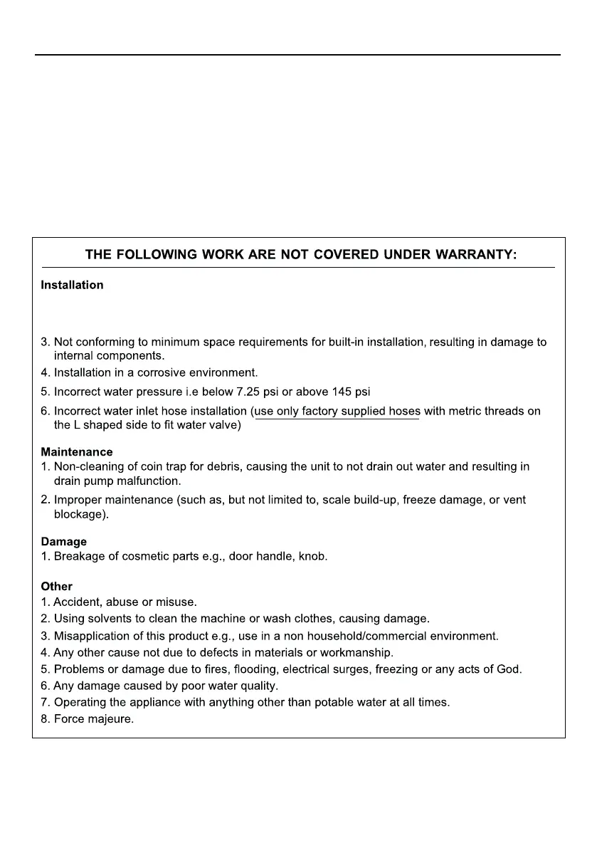 Appliances is responsible) or has the customer omitted or done something to cause malfunction
