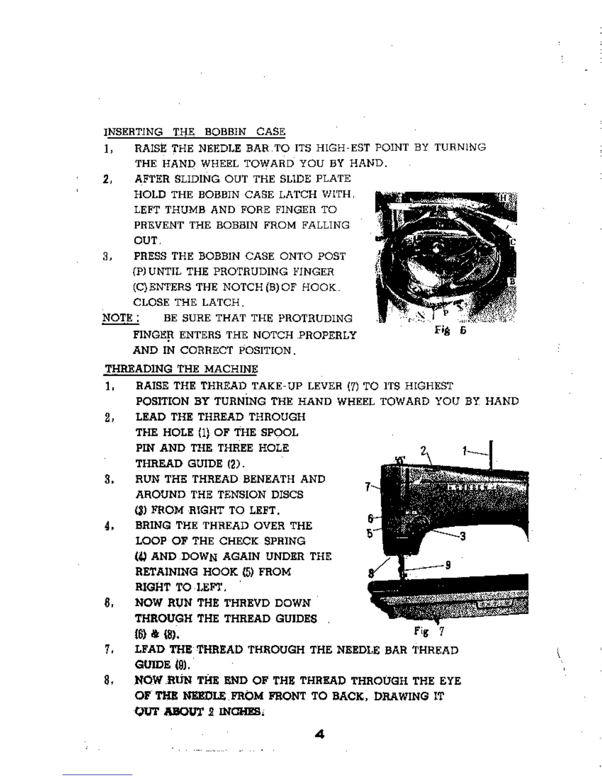 Consew 103 - Inserting the Bobbin Case; Threading the Machine
