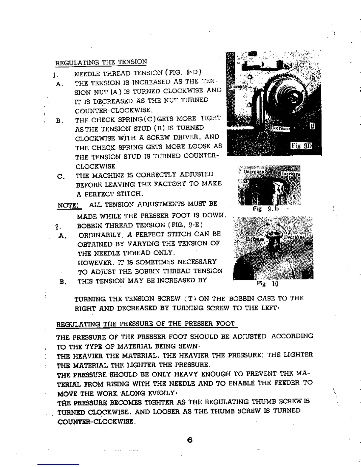 Consew 103 - Regulating Needle and Bobbin Tension; Presser Foot Pressure Adjustment