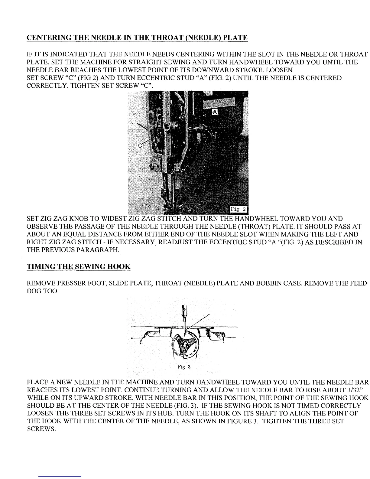 THE CENTER OF THE NEEDLE (FIG. 3). IF THE SEWING HOOK