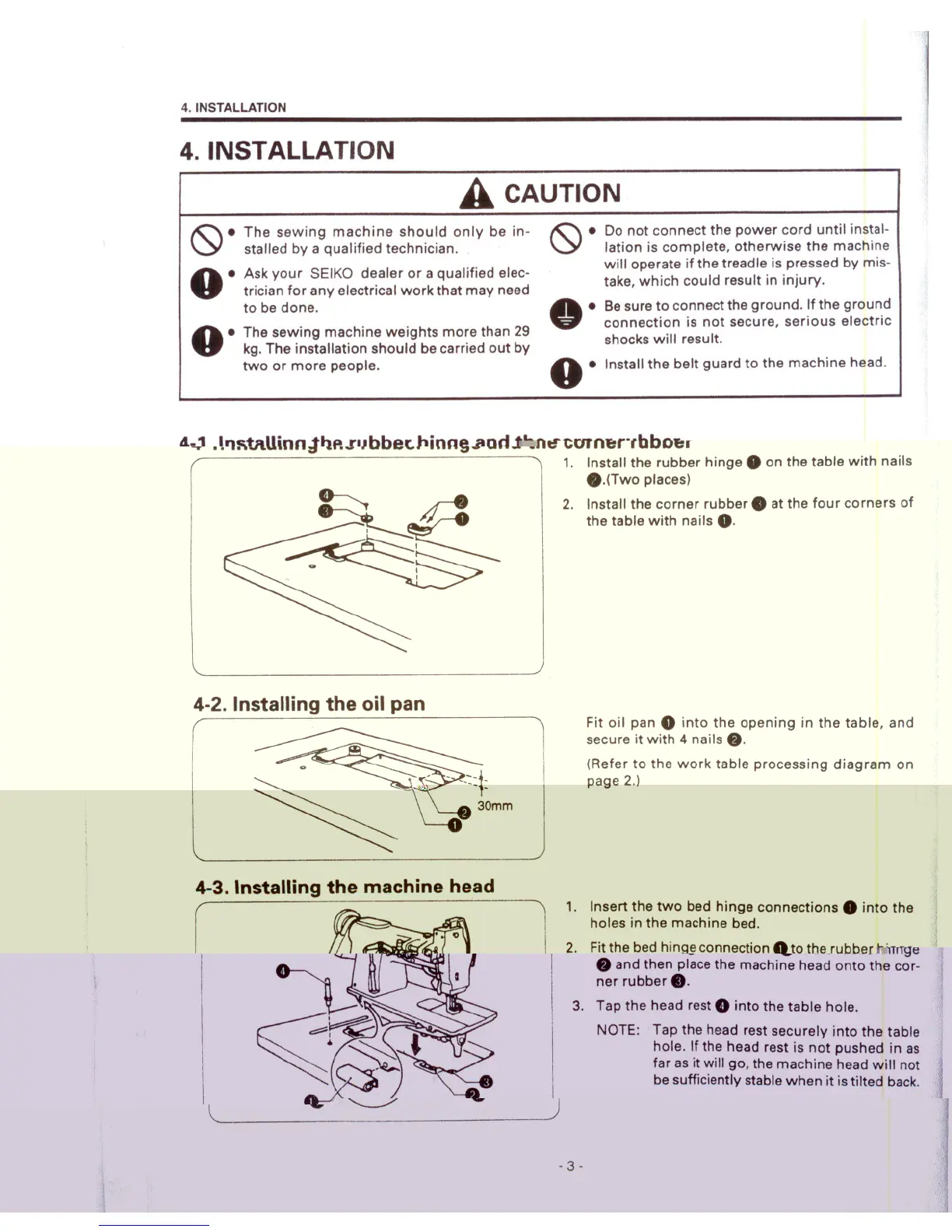 ,<;:\. The sewing machine should only be in-\Y stalled by a qualified technician.
