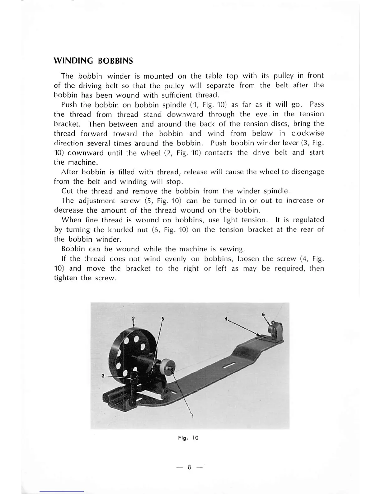 If the thread does not wind evenly on bobbins, loosen the screw (4, Fig.