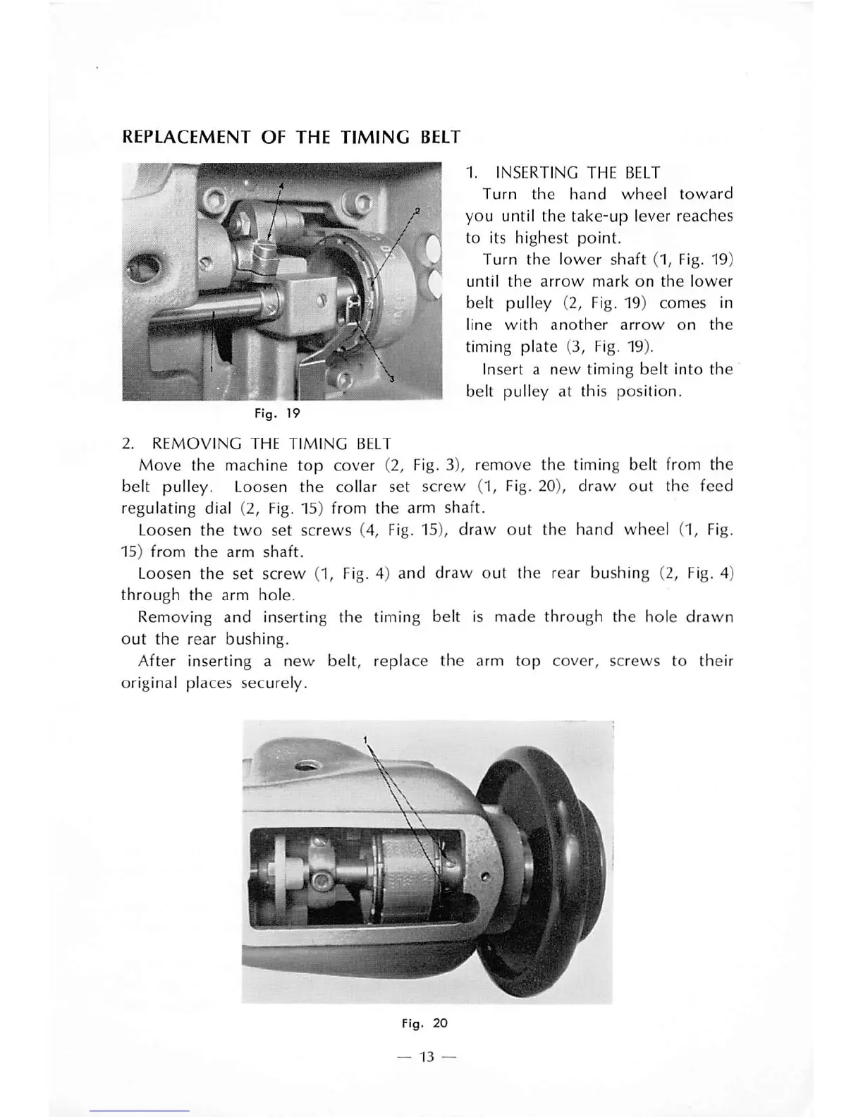belt pulley. Loosen the collar set screw (1, Fig. 20), draw