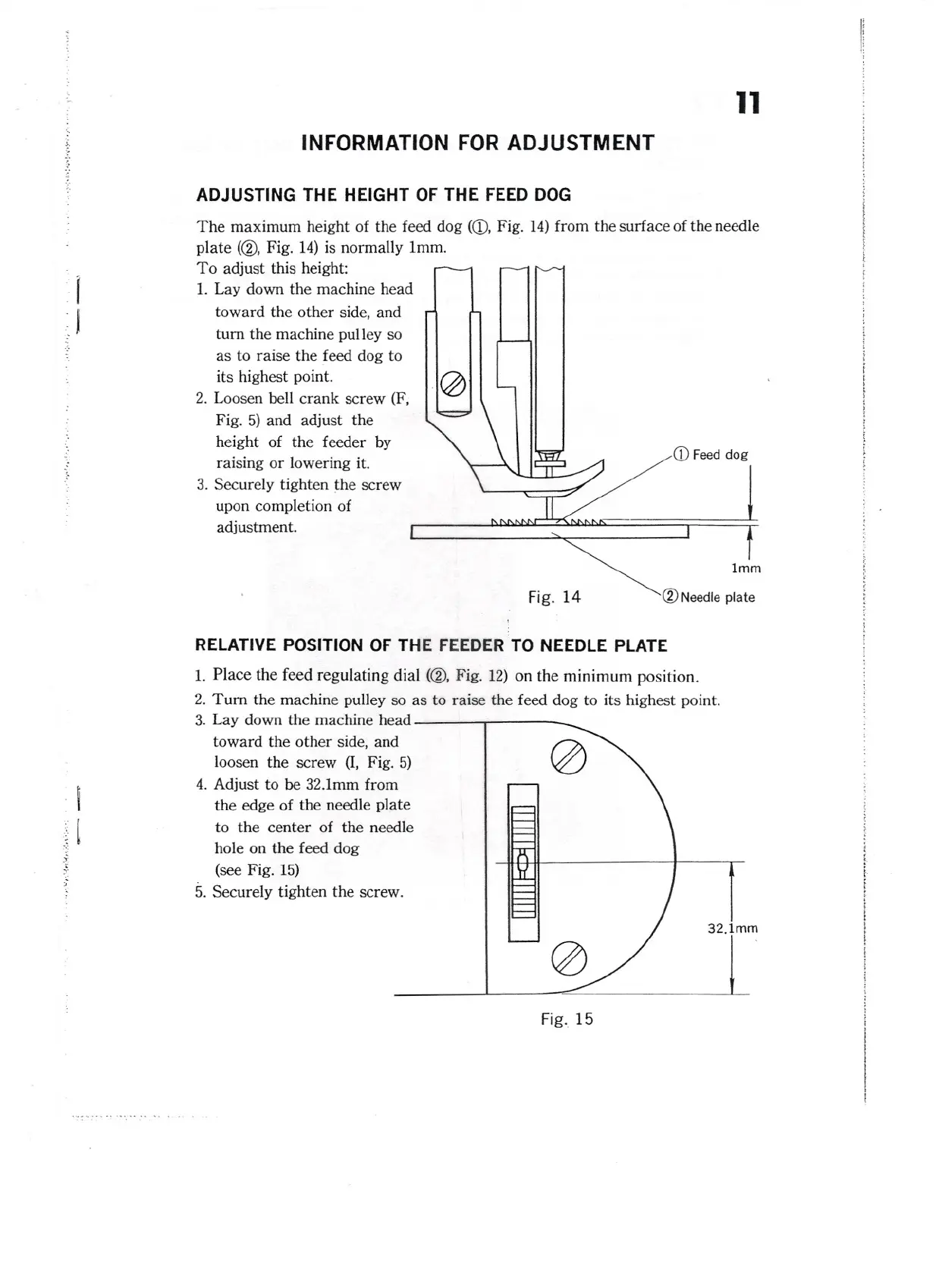 RELATIVE POSITION OF THE FEEDER TO NEEDLE PLATE