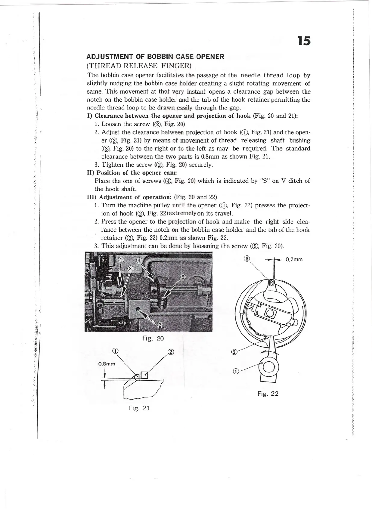 I) Clearance between the opener and projection of hook (Fig. 20 and 21):
