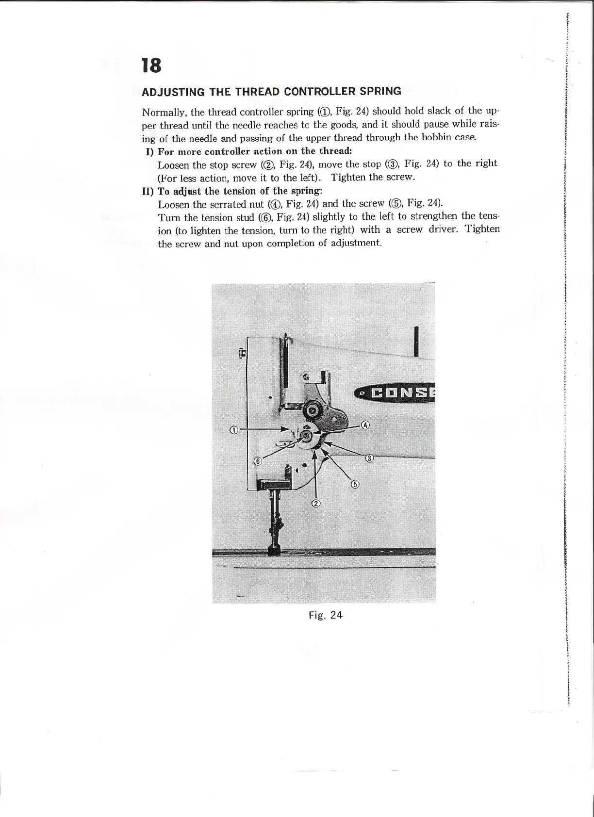 Normally,the thread controllerspring(CD, Fig. 24)shouldhold slack of the up-