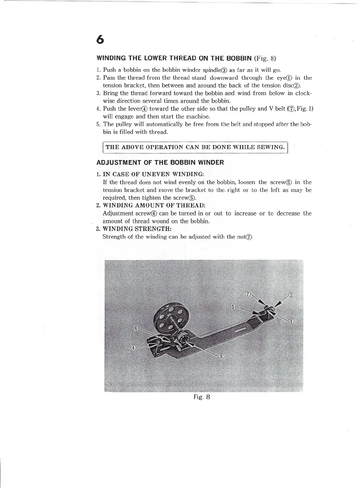 WINDING THE LOWERTHREAD ON THE BOBBIN (Fig. 8)
