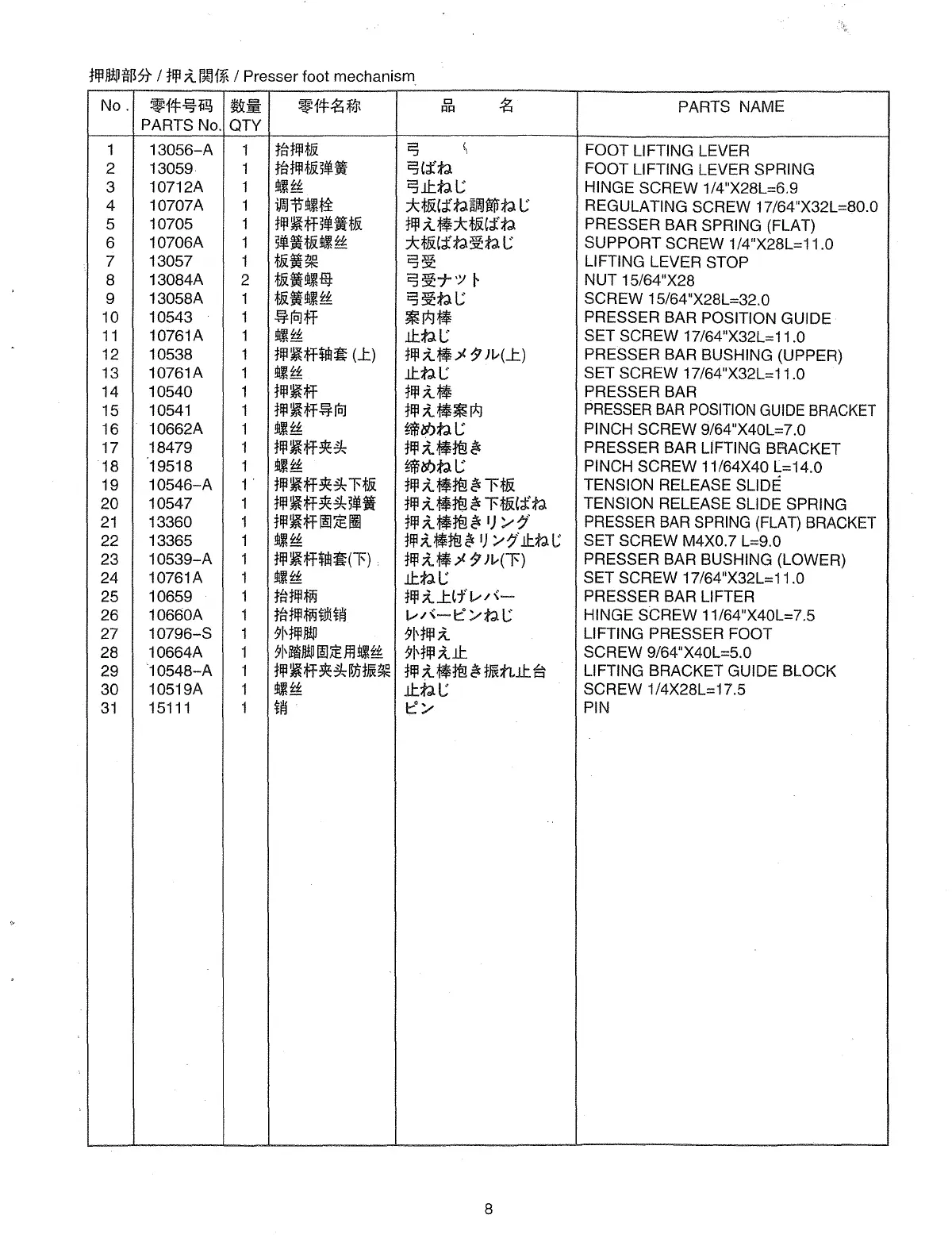 PRESSER BAR SPRING (FLAT) BRACKET
