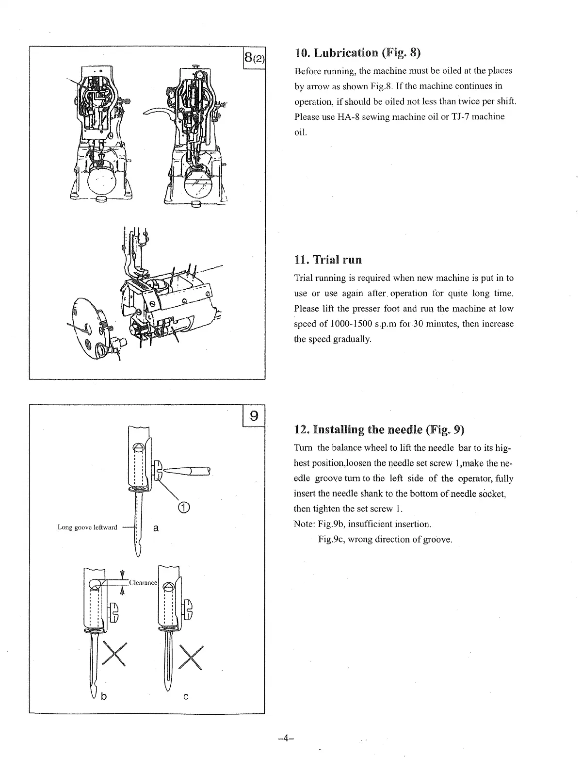 12. Installing the needle (Fig. 9)
