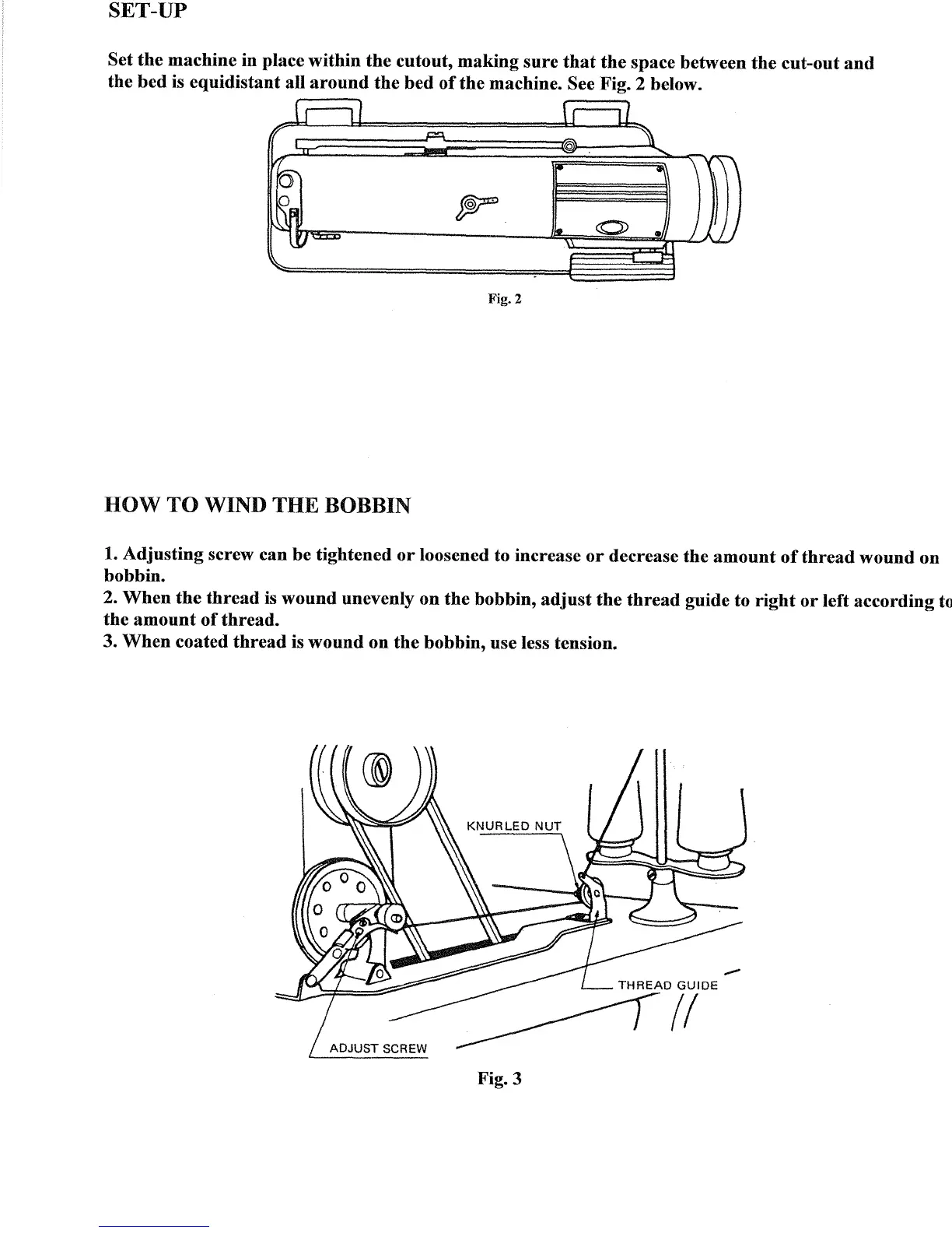 Consew 230 - Machine Setup and Bobbin Winding; Proper Machine Setup; Bobbin Threading and Winding