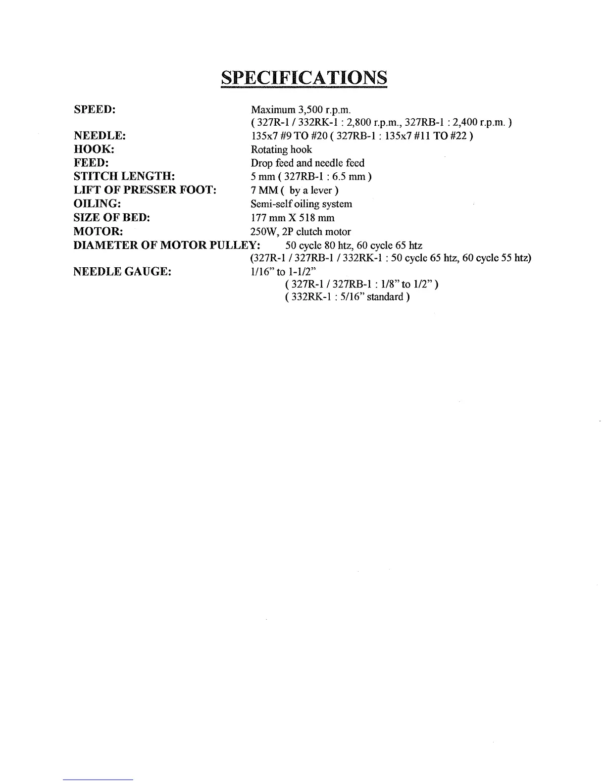 Consew 332 - Machine Specifications and Setup; Specifications Overview