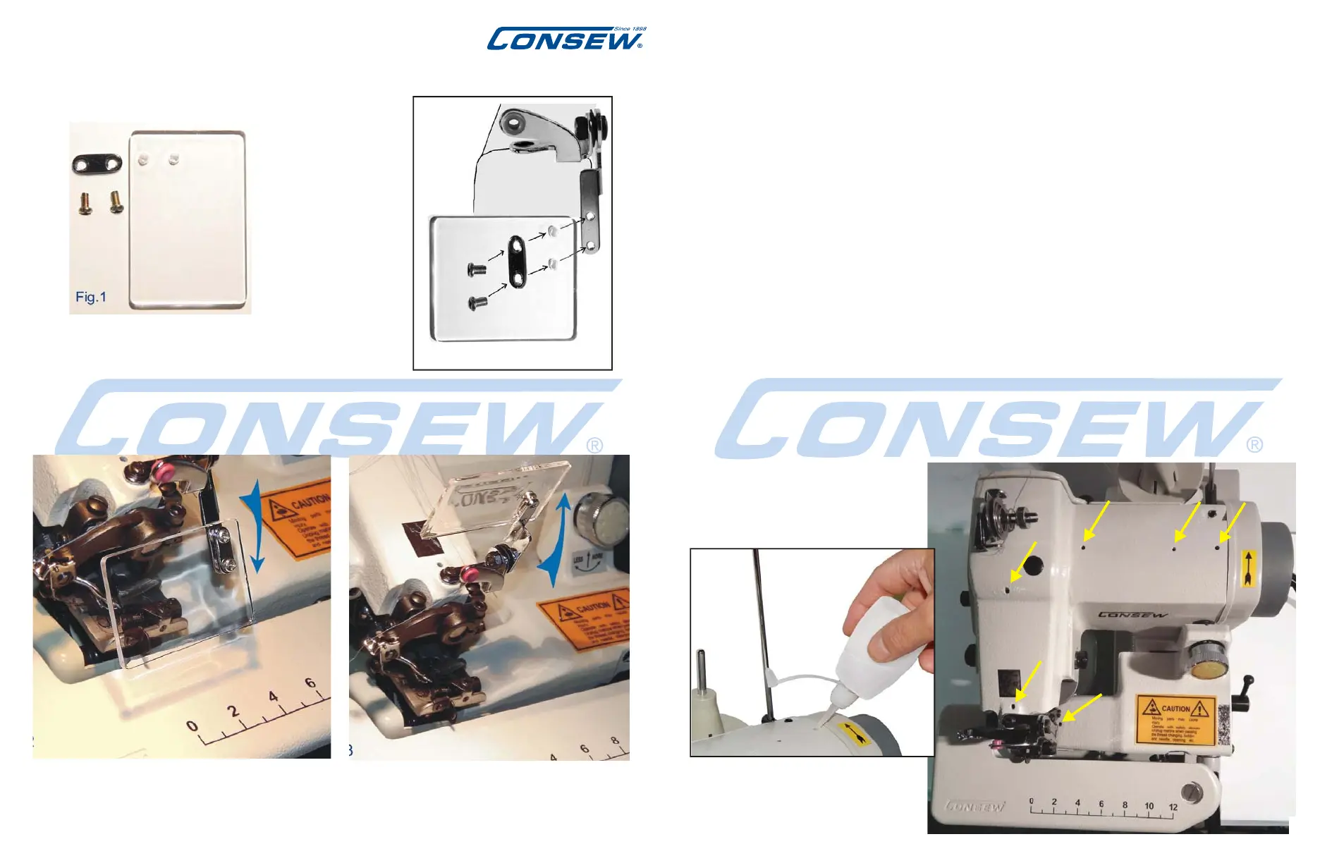 Carefully place a drop sewing machine oil into all the holes indicated by arrows on