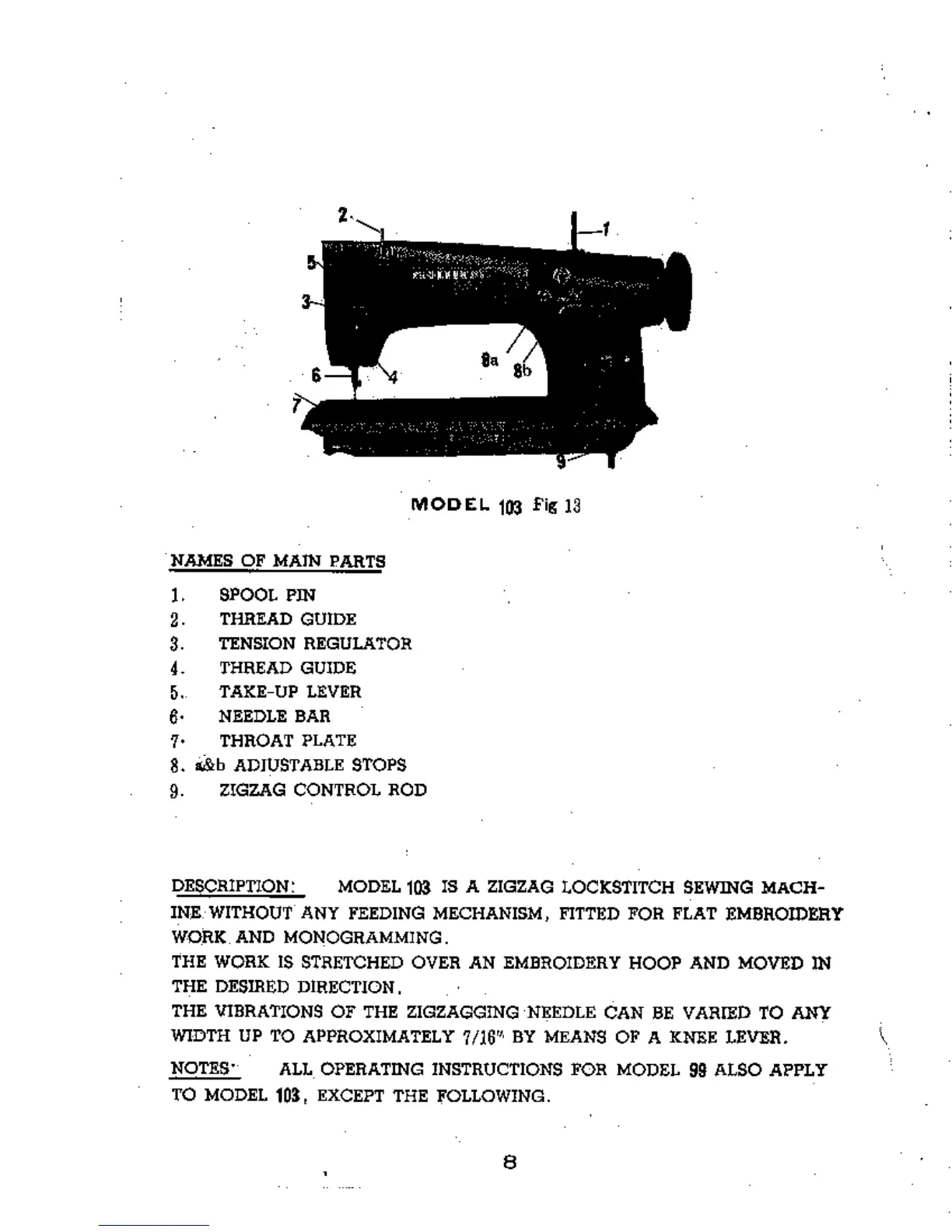 Consew 99 - Model 103 Operation Details; Model 103 Main Parts Identification; Model 103 Overview and Functionality