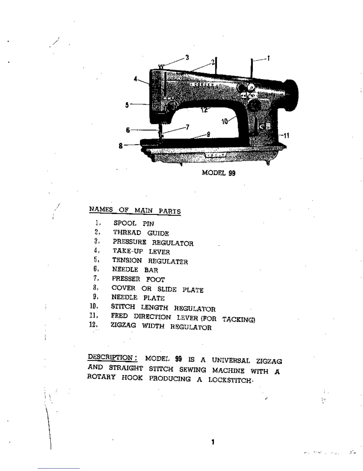 Consew 99 - Machine Parts Overview; Major Machine Components; Needle Assembly and Plate Parts; Stitch and Feed Control Mechanisms