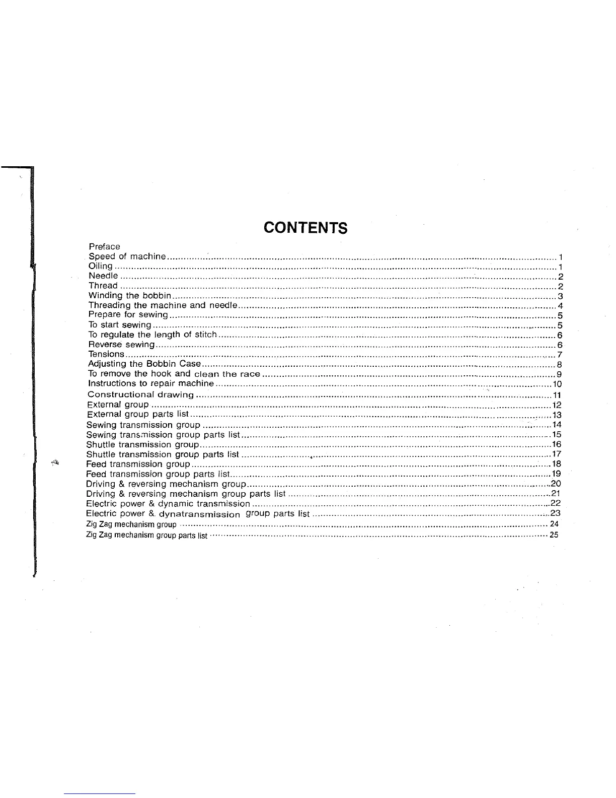 Zig Zag mechanism group parts list .. · .. · · · · · · · .. · · · · · · · ·